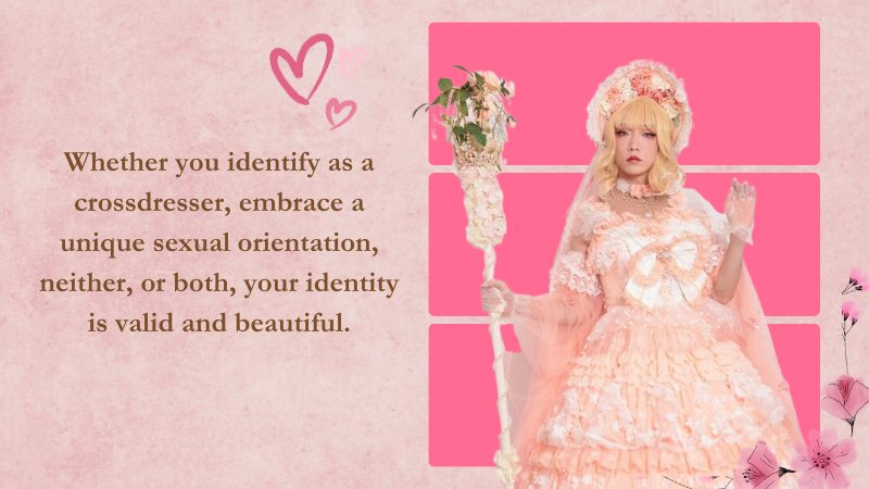 Whether you identify as a crossdresser, embrace a unique sexual orientation, neither, or both, your identity is valid and beautiful.