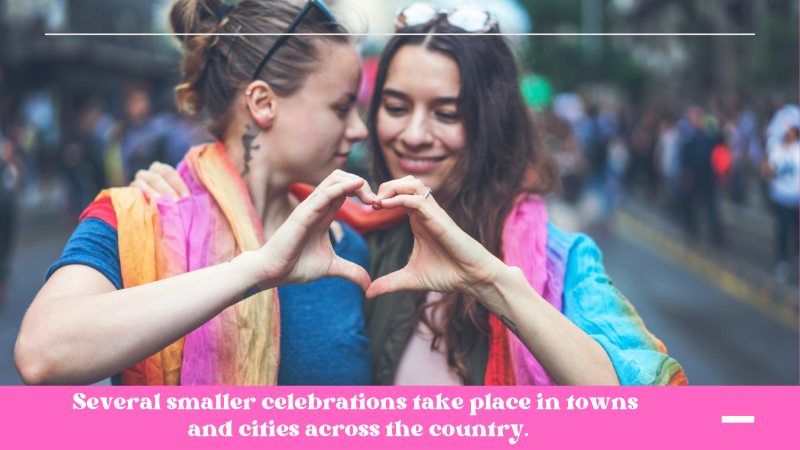 While many Pride celebrations are large and boisterous affairs, several smaller celebrations take place in towns and cities across the country. So, no matter where you are, you can find a Pride celebration to attend. Some of the smaller cities include: