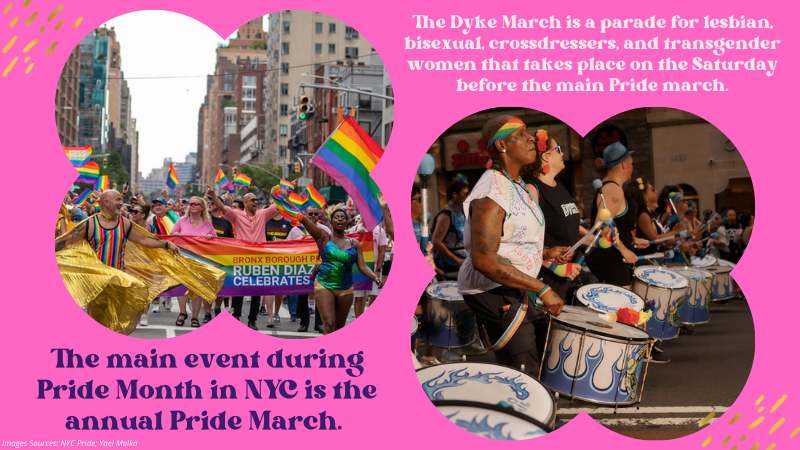 The main event during Pride Month in NYC is the annual Pride March, which will take place on Sunday, June 26th this year. The march route goes from 36th Street and Fifth Avenue down to Christopher Street– the location of the Stonewall Inn. An estimated two million people attend the march each year, making it one of the largest pride celebrations in the world.