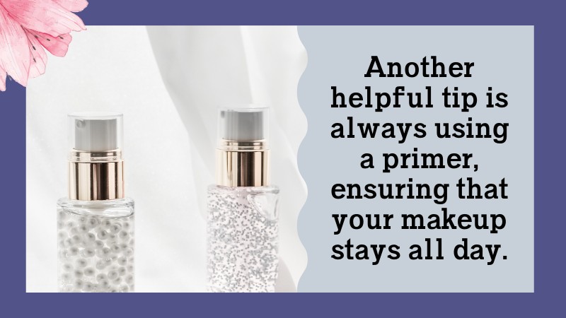 Another helpful tip is always using a primer, ensuring that your make-up stays all day.