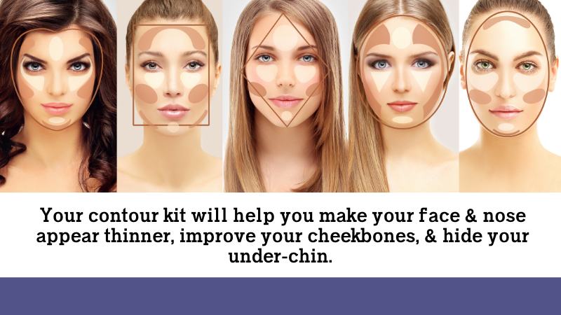 Trust me, your contour kit will help you make your face and nose appear thinner, improve your cheekbones, and hide your underchin. It’s like magic!