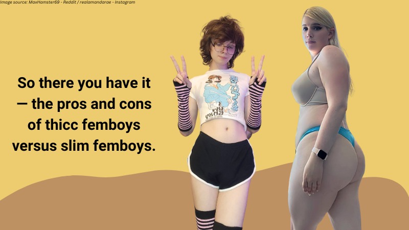 Both — thicc and slim femboys — are gorgeous. But they come with their own sets of pros and cons.