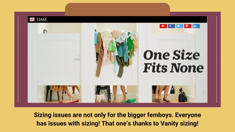 But remember this: Sizing issues are not only for the bigger femboys. Everyone has issues with sizing! That one’s thanks to Vanity sizing!