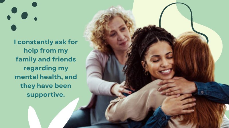 There are multiple therapists, support groups, and online resources that can help you. Do not be discouraged if the first person you try to talk to does not work out. I constantly ask for help from my family and friends regarding my mental health, and they have been supportive. Finding the right resources that worked for me took me two years, but it was worth it in the end.