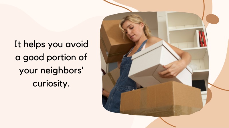 You can improve your discretion by moving at night. It helps you avoid a good portion of your neighbors’ curiosity. Remember that this method is more effective if you live alone, as people waiting for you at home may find it suspicious. It also works for trips in which you want to take your cross-dressing supplies with you.
