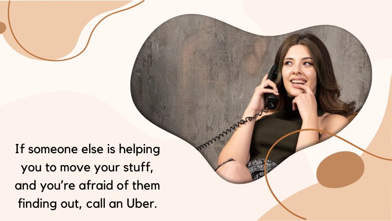 If someone else is helping you to move your stuff, and you’re afraid of them finding out, call an Uber. As I was leaving my last apartment, my father-in-law offered to help with the process. He’s somewhat transphobic, and I didn’t want to come out to him. So I called an uber earlier that day and asked him to take my cross-dressing stuff to a friend’s house, where I could pick them up later.