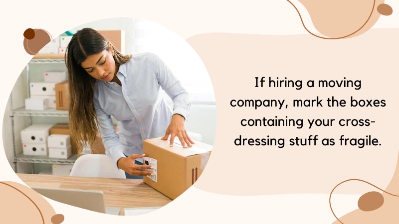 If hiring a moving company, mark the boxes containing your cross-dressing stuff as fragile. This way, they’ll be extra careful with your stuff. Another option is to leave the heavy things for them and take fragile items, such as cross-dressing garments, with you in your car. Be versatile, and adapt to the situation around you. This way, you can decide which technique better suits your goal. The important thing is not to leave behind this part of who you are.