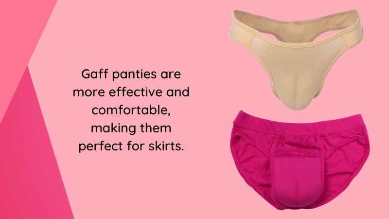 Besides, it’s a topic somewhat related to underwear in general since some panties and thongs are designed for that purpose. Gaff panties are more effective and comfortable, making them perfect for skirts. Another good option would be some of our silicone fake vagina pants, which go well with pantyhose and match most underwear.