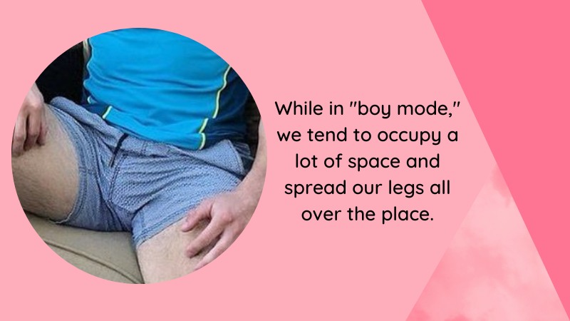 Remember that masculine body language can be pretty inappropriate while wearing a skirt. While in “boy mode,” we tend to occupy a lot of space and spread our legs all over the place. Most people don’t even seem to notice, as it’s a behavior we learn in this society. And because of that, it’s hard to “Unlearn” this kind of thing while presenting en-femme. We don’t categorize it as masculine body language and behavior until we see a woman doing the same and think it’s weird. But when it comes to skirts, there are much bigger problems for us to be concerned about.