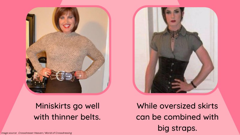 Accessories go well with skirts, and some of them can come in handy for first-timers. The most apparent function would be to keep your skirt in place. Remember that they are designed for a feminine frame, and even shapewear fails to adapt our structure to them completely. As such, they tend to fall from our waists and move out of place more often than we would like them to. Hip pads can slow down that process, as they increase our hip-to-waist ratio, but they are not a permanent solution. But we have some options to help us with that, the first being using belts.