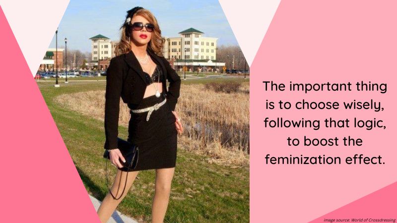 It’s best to avoid anything too big, as it overwhelms your frame, leaving little space for proper feminization. I recommend the use of hip pads if that happens to be the case, so a slim miniskirt will be able to improve your curves. Keep it plain and simple as a means of making it effective. You’ll look feminine, and that is what matters when it comes to skirts.