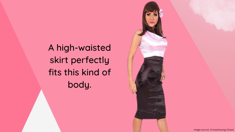 It means you’re a little bit chubbier on the belly, with a waist that is not so well-defined. But it doesn’t mean a skirt won’t look good on you! On the contrary, a high-waisted skirt perfectly fits this kind of body. The ideal length would be from the middle of your body to just below your knees. If it flows away from the center of your body, it will create a more well-defined waistline and do wonders to feminize your frame.