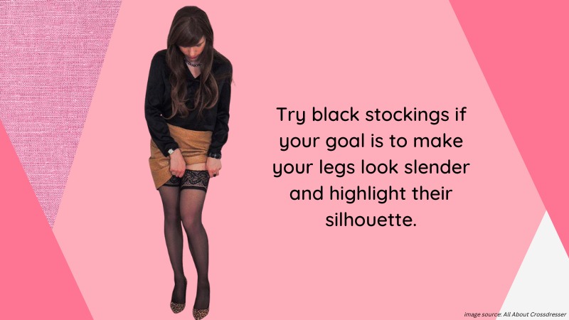 Wearing a skirt means your legs will be more exposed than they would be in skinny jeans. Many cross-dressers are okay with that at home, but showing off their legs in public can cause a little commotion. It requires some confidence to do so, but a few things I’ll mention here may improve your self-esteem and help you become more confident. First, let’s start with the classic method for making your legs presentable in a more feminine way. High-denier hosiery is one of the most popular methods among cross-dressers. I recommend a double layer of pantyhose that matches your skin tone if that’s the case, as it creates a cleaner effect. However, try black stockings if your goal is to make your legs look slender and highlight their silhouette. Depending on the size of your skirt, you might choose to wear knee-high tights, as they have a similar effect.