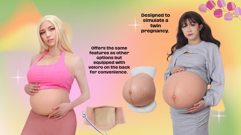 - Silicone Twins Pregnant Belly: Designed to simulate a twin pregnancy. Features stretch marks and a highly stretchy edge for an accurate representation.