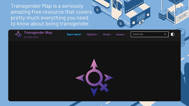 Transgender Map is a seriously amazing free resource that covers pretty much everything you need to know about being transgender. This site has everything you need to know to transition. It has detailed info on the medical, legal, and social aspects of transitioning. Bonus points cause every info is presented in a way that’s easy to understand.
