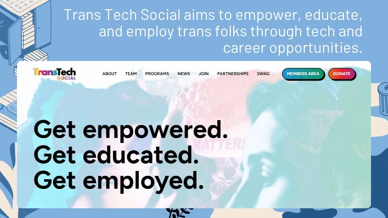 Trans Tech Social aims to empower, educate, and employ trans folks through tech and career opportunities. I found out about them when I was looking for a job. ‘Cause you know, a trans gotta save up for my surgery! (And eat, honestly.)