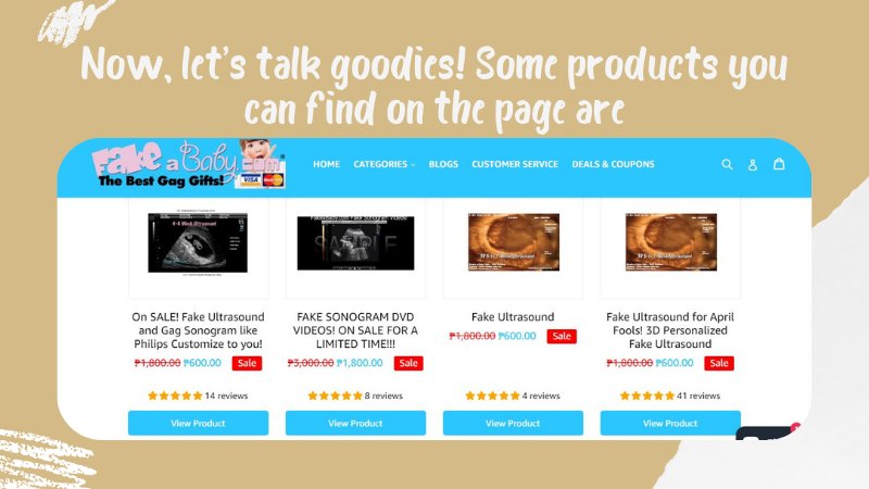 - FakeABaby offers fake ultrasounds (seriously, they look so real) to pregnancy tests that say you’re positive even if you’re definitely not.