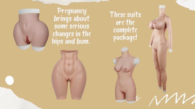 For MTF crossdressers, slipping into a full body suit makes it super easy to get a seamless, head-to-toe pregnant body.