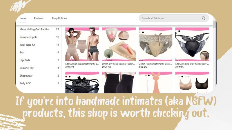 If you’re into handmade intimates (aka NSFW) products, this shop is worth checking out.