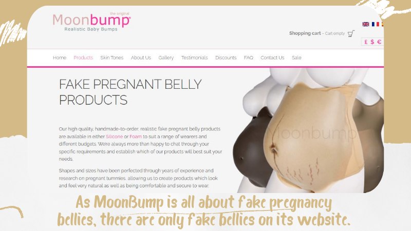 As MoonBump is all about fake pregnancy bellies, there are only fake bellies on its website.