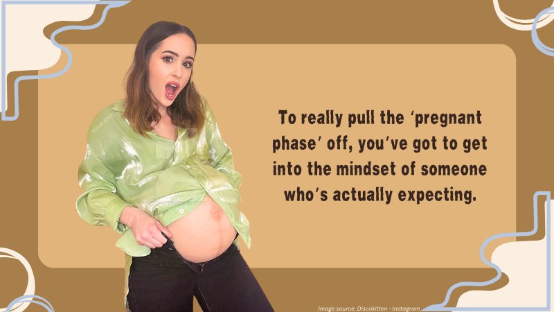 To really pull the ‘pregnant phase’ off, you’ve got to get into the mindset of someone who’s actually expecting. Think of it like method acting. The more you immerse yourself in the role, the more natural and comfortable you’ll be as that role!
