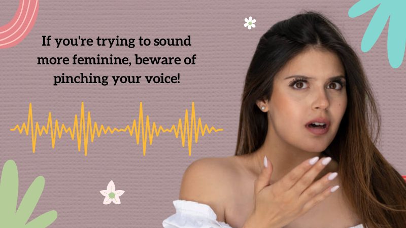 As I tried to sound more feminine, I made the mistake of pinching my voice. This made my voice sound high-pitched and squeaky. And I didn’t even get bothered until later. So if you’re trying to sound more feminine, beware of pinching your voice!