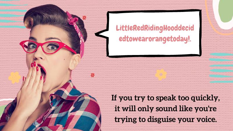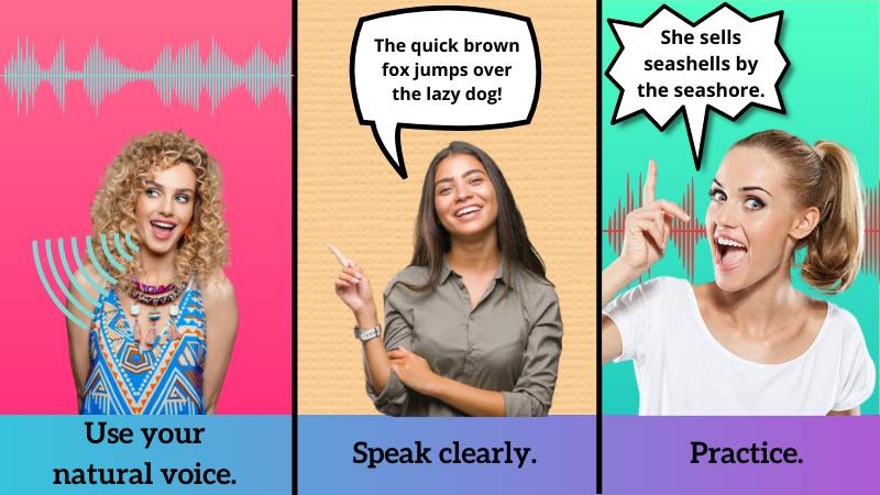 3) Speak clearly: This tip goes hand in hand with using your natural voice. When you use your natural voice, you will automatically speak more clearly. However, if you find yourself mumbling or speaking unclearly, make a conscious effort to speak more clearly.