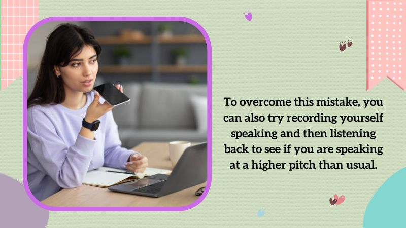 To overcome this mistake, you can also try recording yourself speaking and then listening back to see if you are speaking at a higher pitch than usual. During this course, ensure that you are not speaking in a monotone voice, making your voice sound even more masculine.