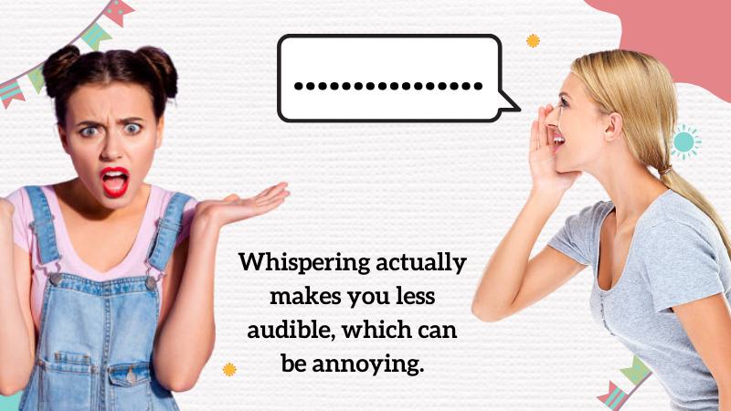 Another thing, whispering actually makes you less audible, which can be annoying. So if you want to be heard and understood, avoid whispering as well. Instead, use a clear and confident voice. If you want to sound more feminine, make sure you use your natural voice and avoid whispering!