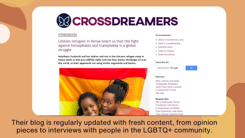 Crossdreamers offer an inclusive, safe, and non-judgemental environment. Their blog is regularly updated with fresh content, from opinion pieces to interviews with people in the LGBTQ+ community. With a vibrant and diverse range of contributors, they offer insights into what it’s like to explore gender identity – both technically and emotionally.