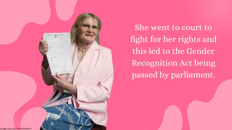 So she went to court to fight for her rights and this led to the Gender Recognition Act being passed by parliament.