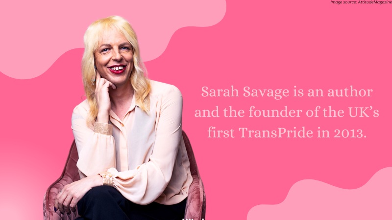 Sarah Savage is an author and the founder of the UK’s first TransPride in 2013. Since then, the pride event has brought together hundreds of transgender people in the UK who walk the streets waving pink, blue, and white flags.