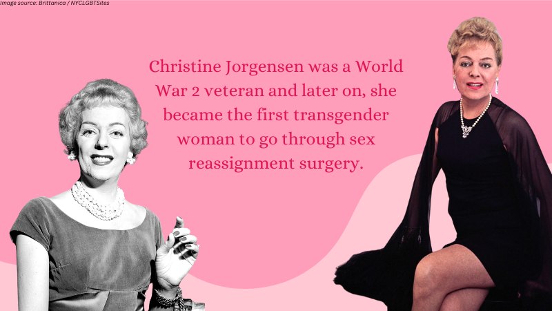 Christine Jorgensen was a World War 2 veteran, and later on, she became the first transgender woman to go through sex reassignment surgery.