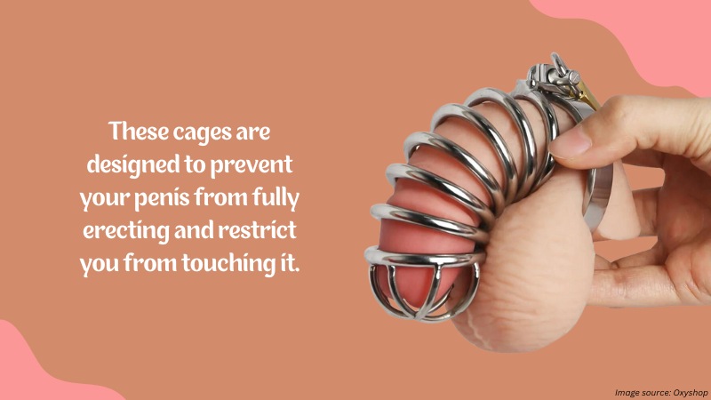 These cages are designed to prevent your penis from fully erecting and restrict you from touching it.