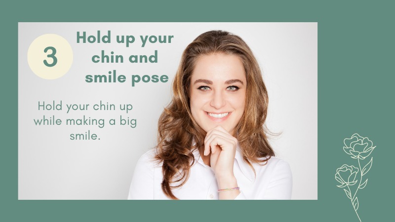 The next pose on this list is the “Hold up chin and smile pose.”It can be done with both one hand or two.