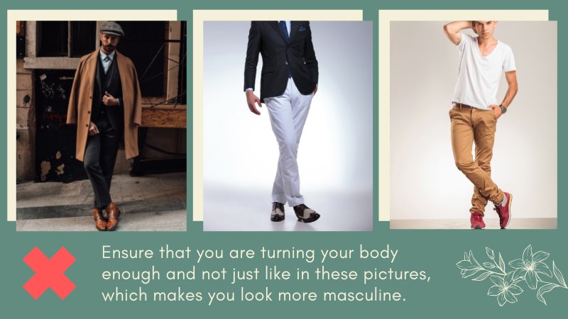 Ensure that you are turning your body enough for both legs to be visible in the photo and not just one leg like in this picture, which makes you look more masculine.
