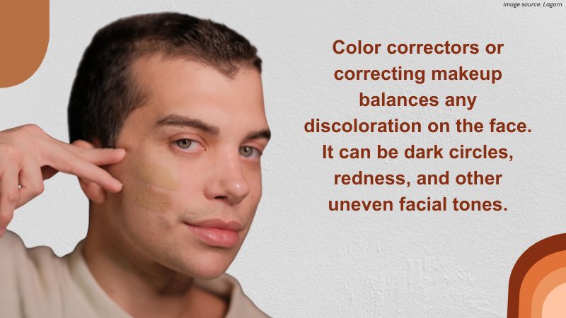 Color correctors or correcting makeup balances any discoloration on the face.