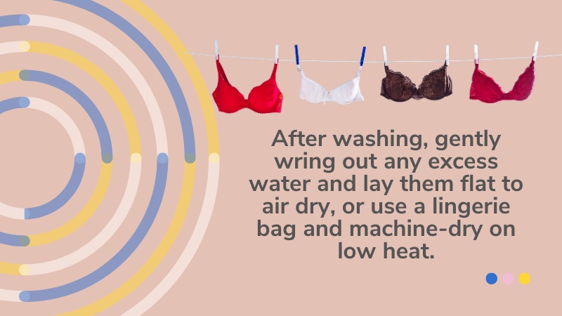 After washing, gently wring out any excess water and lay them flat to air dry, or use a lingerie bag and machine-dry on low heat. This will help keep the elasticity and shape of your bras intact.