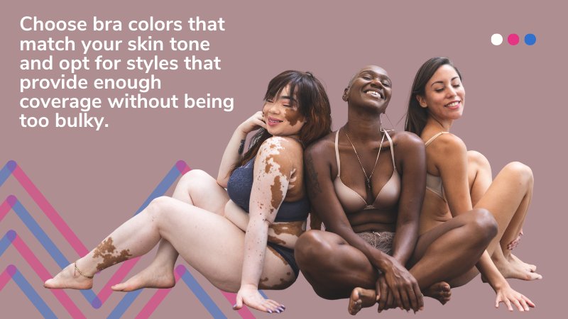 Choose bra colors that match your skin tone and opt for styles that provide enough coverage without being too bulky. Also, select bras with wider straps tend to be more comfortable on the shoulders.