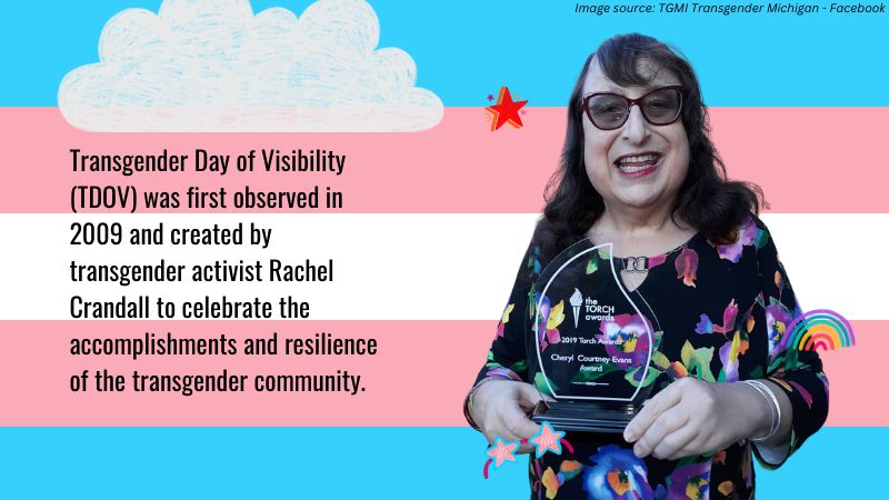 Transgender Day of Visibility (TDOV) was first observed in 2009 and created by transgender activist Rachel Crandall. The aim was to celebrate the accomplishments and resilience of the transgender community. Crandall, based in Michigan, was inspired to create TDOV after noticing a lack of positive representation and awareness around the experiences of transgender people. The inaugural TDOV was celebrated on March 31st, 2009. Events and activities were held in Michigan and other parts of the United States. TDOV grew in popularity and visibility in the following years. Events were being organized in more countries and regions worldwide.