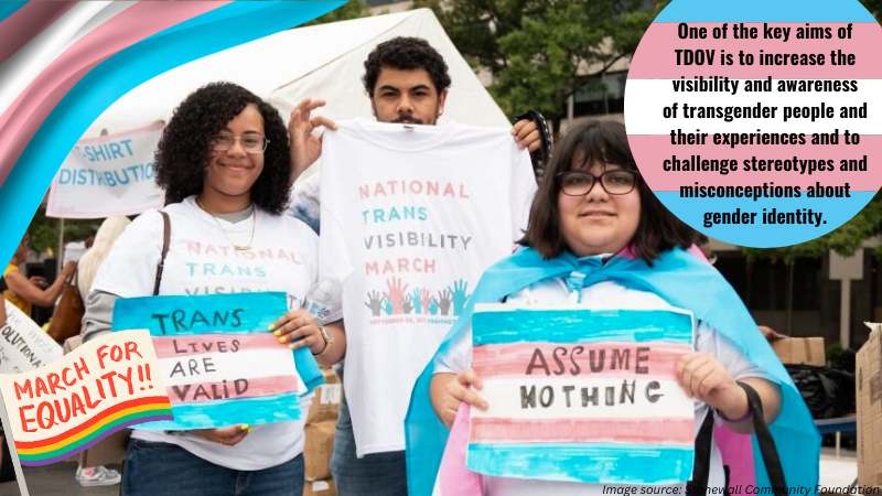 One of the key aims of TDOV is to increase the visibility and awareness of transgender people. Another is their experiences in challenging stereotypes and misconceptions about gender identity. It is also a time to highlight the challenges faced by the transgender community. These include discrimination, marginalization, violence, and advocating for greater rights and protections.