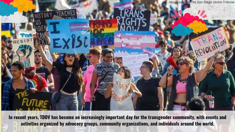 In recent years, TDOV has become an increasingly important day for the transgender community, with events and activities organized by advocacy groups, community organizations, and individuals worldwide. It has also received recognition and support from governments, businesses, and other organizations, demonstrating a growing awareness and acceptance of transgender individuals and issues.
