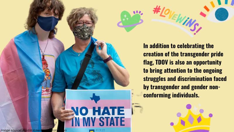 TDOV is an opportunity to raise awareness about the discrimination and violence that trans people often face and celebrate their contributions to society. It is a day to honor the bravery and courage of trans individuals. Individuals who have chosen to live their lives authentically. Individuals who acknowledge the ongoing fight for equality and acceptance. By actively participating in events and campaigns, we can show our support for the transgender community. We can help to make a positive difference in their lives. Lastly, we can work towards a future where everyone can live their lives to the fullest.