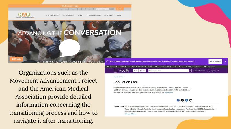 Organizations such as the Movement Advancement Project and the American Medical Association