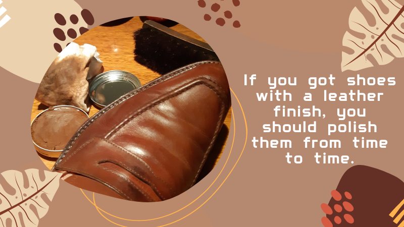 - If you have shoes with a leather finish, you should polish them from time to time. Polishing your leather shoes not only keeps them looking shiny and neat but also helps protect them against water.