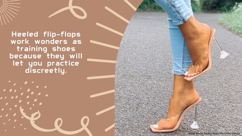 You will notice how you need to move differently when wearing heels, and it takes some time to adjust.