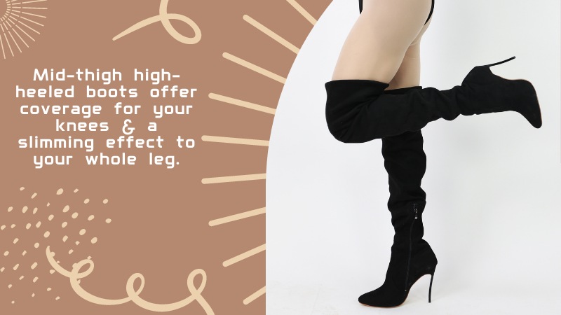 In addition, as they can reach as high as mid-thigh, boots offer coverage for your knees and a slimming effect on your whole leg.