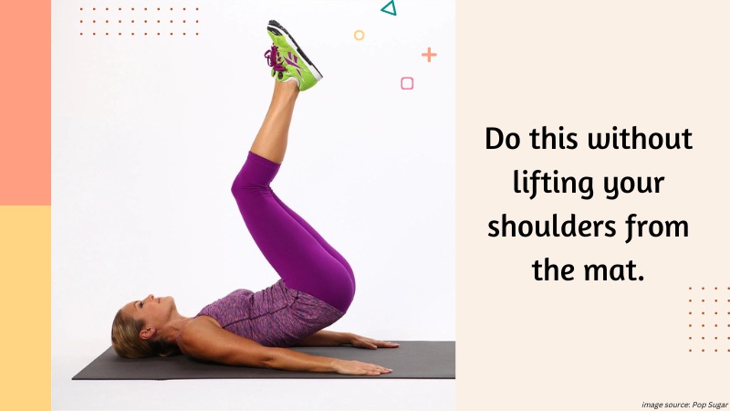 Slowly and as fluently as you can, once you reach position two, lift the lower part of your back from the floor and raise the sole of your feet towards the sky. Do this without lifting your shoulders from the mat. From there return to the starting position tracing back your movements. Five sets of thirty reps each should do the trick! In case you are wondering how to perform it exactly, watch this tutorial!