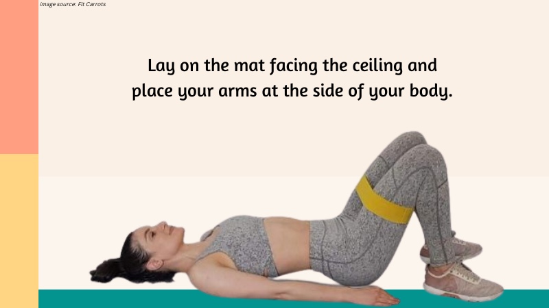 Now that we are starting to feel our glutes are starting to burn a little, let’s get to something a bit easier. The reason why we are continuing with this exercise is that our glutes are well warmed up by now, so we will realize very easily if we are doing this correctly. Lay on the mat facing the ceiling and place your arms at the side of your body. Bend your knees and place your feet at shoulder width while placing the sole of your feet firmly on the floor.