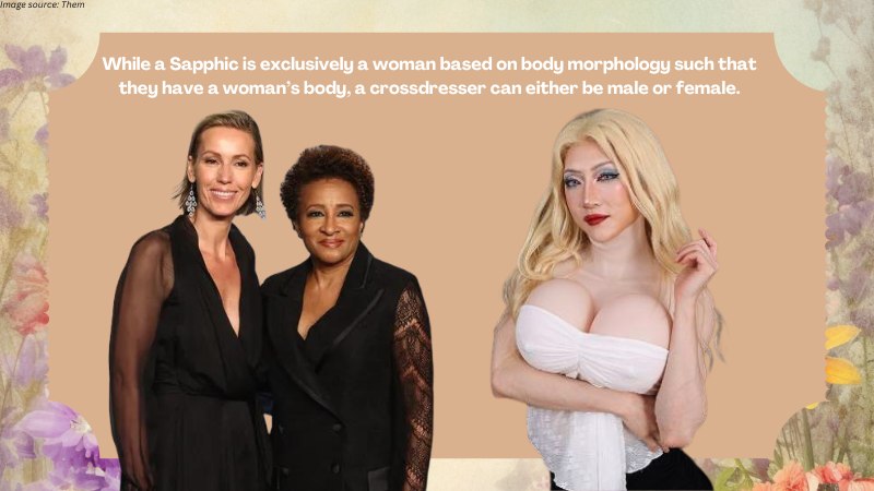 While a Sapphic is exclusively a woman based on body morphology such that they have a woman’s body, a crossdresser can either be male or female.